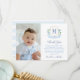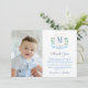 Preppy Coastal Monogram Baby Boy Christening Photo Thank You Card