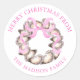 Preppy Coastal Oyster Bow Wreath Christmas Address Classic Round Sticker