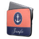 Preppy Coral Navy Nautical Anchor Custom Name Laptop Sleeve