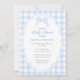 Preppy Doodle Frame Blue Gingham & Bow Baby Shower Invitation
