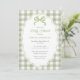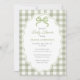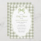 Preppy Doodle Frame Green Gingham Bow Baby Shower Invitation