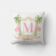 This Christmas pillow has a preppy design featuring a Christmas crest with palm trees and flamingos wearing Santa hats. You can personalize with your name.