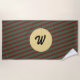 Preppy Forest Green & Burgundy Stripes Monogram Beach Towel
