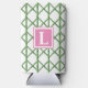 Preppy Green Trellis Bamboo Pattern Monogram Seltzer Can Cooler
