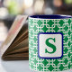 Preppy Green White Link Pattern Green Monogram Two-Tone Coffee Mug