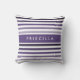Preppy Large Striped Pattern With Name in Purple Throw Pillow