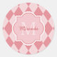 Preppy Light Pink Argyle Girly Monogram Party Name Classic Round Sticker