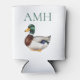 This preppy monogrammed can cooler features mallard ducks in classic shades of green, blue and brown. Personalize the monogram on the front with your choice of initials and special text on the back in matching green. Great for sportsman inspired gift bags.