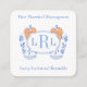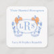 A chic little insert card to confirm monograms of married couple (in the event of a shower requesting monogrammed goods). This design features a simple and elegant monogram badge with a blue and white watercolor ginger jar with pumpkin orange bow on each side.
