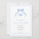 Preppy Monogram Blue Bow Boy Baby Shower Party Invitation