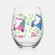 Preppy Monogram Golf Pink Blue Golf Cart Pattern Stemless Wine Glass
