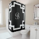 A white Greek key border frames a monogram in white script font on a black background. Easily customize it with your own initial. Also makes a great personalized housewarming gift!