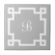 Preppy Monogram White Greek Key Border Gray Ceramic Tile