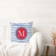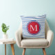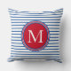 Preppy Nautical Red White and Blue Stripe Monogram Throw Pillow
