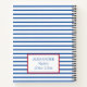 This preppy notebook features classic blue and white stripes with an accent of red and a nautical anchor. Personalize with your choice of name or special text on the back. Great for personalized gift bags and party favors.