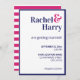 Preppy Navy Blue Border & Hot Pink Stripes Wedding Invitation