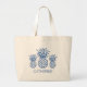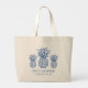 Preppy Navy Blue Tropical Pineapple Personalized Large Tote Bag
