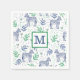 Add a playful yet polished touch to your entertaining with these preppy cocktail napkins featuring navy zebras holding martinis, accented with lush green and blue greenery. Finished with a classic green monogram, this design blends whimsical charm with timeless sophistication.