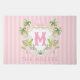 This door mat has a preppy crest design featuring palm beach pool chairs and umbrellas. You can personalize with your monogram initial and name.