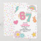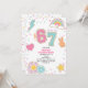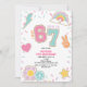 I was six now I'm seven, 67! Preppy patch 7th birthday invitation with rainbow, heart and peace sign.