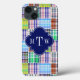 Preppy Patchwork Madras Navy Quatrefoil Monogram Case-Mate iPhone Case