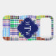 Preppy Patchwork Madras Navy Quatrefoil Monogram Case-Mate iPhone Case