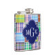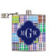 Preppy Patchwork Madras Navy Quatrefoil Monogram Hip Flask