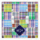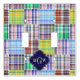 Colorful Preppy Patchwork Madras Style Plaid Pattern, Navy Blue Quatrefoil Monogram