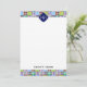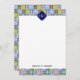 Preppy Patchwork Madras Navy Quatrefoil Monogram Note Card