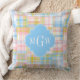 Preppy Patchwork Madras Pastel Quatrefoil Initials Throw Pillow
