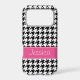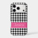 Preppy Pink and Black Houndstooth Personalized Case-Mate iPhone Case
