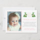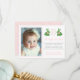 Preppy Pink And Green Boxwood Bunny Baptism Photo Thank You Card