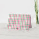 Preppy Pink and Green Plaid Monogram Note Card