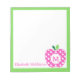 This fun notepad features a cute pink and green polka dot apple monogram. Personalize the monogram with your choice of initial and add your name or special text to the bottom. Makes a great teacher's gift.