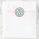 Preppy Pink and Green Polka Dot Monogram Classic Round Sticker