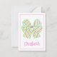 This preppy tiny note card features a bright pink and green stripe bow on white. Personalize with your choice of name or special text.