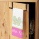 This preppy personalized kitchen dish towel features bright pink and green stripe bows. Personalize with your choice of name or special text. Fun for any occasion. Great for gift bags and housewarming parties.