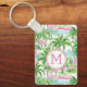 Preppy Pink and Green Tropical palm Trees Monogram Keychain