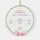 Commemorate your baby girl's first holiday season with this preppy personalized Christmas ornament, featuring a refined birth stats layout and soft, watercolor design details. The front displays your child’s name, birth date, weight, and length in a sophisticated mix of fonts, paired with a green laurel wreath and delicate heart accent for a clean and timeless look. Finished with pink watercolor bows, this design blends classic holiday charm with a fresh, polished aesthetic that feels both traditional and modern. On the reverse, a baby photo is framed by the matching laurel motif and soft watercolor bows, making it a standout keepsake that’s both meaningful and beautifully styled. Perfect for families who love elegance, classic patterns, and elevated simplicity, this ornament captures the essence of a preppy holiday with sentimental detail. Whether gifted to new parents, grandparents or other family members, or hung on your own tree, it’s a charming way to celebrate a baby’s first Christmas in lasting style.