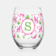 Preppy Pink Cheetah Monogram Stemless Wine Glass