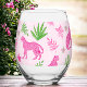 Preppy Pink Cheetah Pink Background Stemless Wine Glass