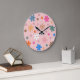 Preppy Pink Colorful Flower Heart Y2K Pattern Large Clock