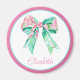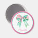 This cute magnet features a preppy pink and turquoise floral bow with a matching pink and turquoise border. Personalize with your choice of name or special text. Great for gift bags.