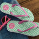 Add some bespoke style to your summer look with our preppy chic monogram flip flops. Design features a classic pink and green color palette, with a retro tropical bamboo lattice pattern and a single initial monogram at the heel. Contrasting pink straps complete the look!