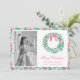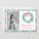 Preppy Pink & Green Palm Beach Wreath Photo Holiday Card