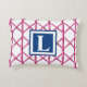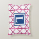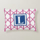 Preppy Pink Navy Trellis Bamboo Pattern Monogram Accent Pillow