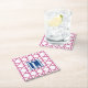 Preppy Pink Navy Trellis Bamboo Pattern Monogram Square Paper Coaster