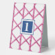This monogram table tent sign with the pink trellis bamboo is so bright and colorful for your party. Personalize with a number. This pink trellis bamboo pattern can be found on more items in my shop, PageCreativeDesigns.