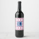 Preppy Pink Navy Trellis Bamboo Pattern Monogram Wine Label