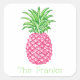 Preppy Pink Pineapple Stars Personalized Square Sticker